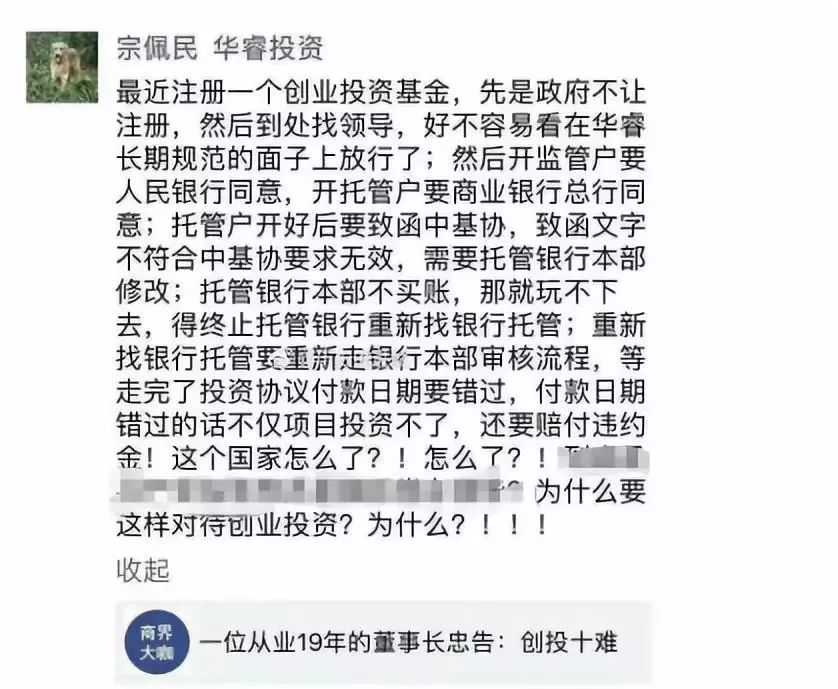“为什么要这样对待创业投资?”8月28日,华睿投资董事长宗佩民的一条朋友圈在创投圈引发关注。
