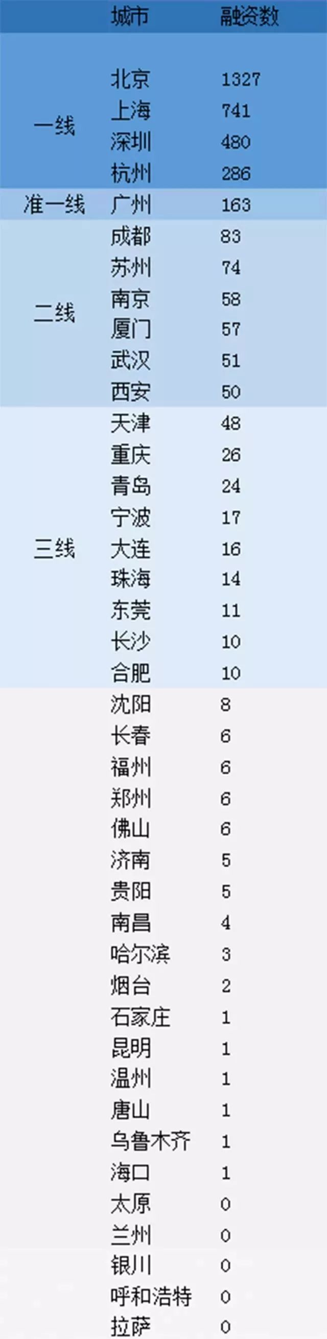在创投行业,一线城市的排名应该是“北上深杭”。实际上类似的猜测早就在坊间流传,在创投方面,杭州的异军突起和广州的掉队并不是什么秘密。2017年的融资数据把这一猜测落实了。