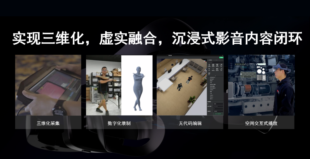 燧光近期发布的醒空®MRGC系统,积极响应五部委于《虚拟现实与行业应用融合发展行动计划》提出的“到2026年,三维化、虚实融合沉浸影音关键技术重点突破”这一发展目标,可帮助不同行业便捷打造三维化、虚实融合沉浸式内容,实现三维化采集、数字化录制、无代码编辑以及空间交互式播放,即“采、录、编、播”的一体化。