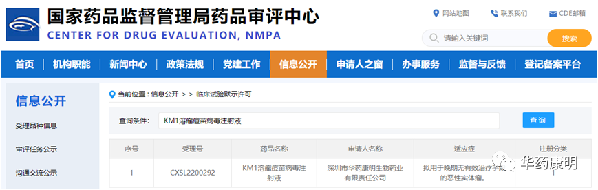 深圳市华药康明生物药业有限责任公司(简称“华药康明”)成立于2019年4月,公司研发中心位于深圳坪山,是强生上海孵化器Jlabs的孵化企业。华药康明是致力于新一代创新型溶瘤痘苗病毒产品研发、转化及产业化的创新型生物科技公司。华药康明自主研发的创新药KM1已于2022年9月和12月分别获中国和美国临床试验批准,从PCC到IND仅用3年时间。
