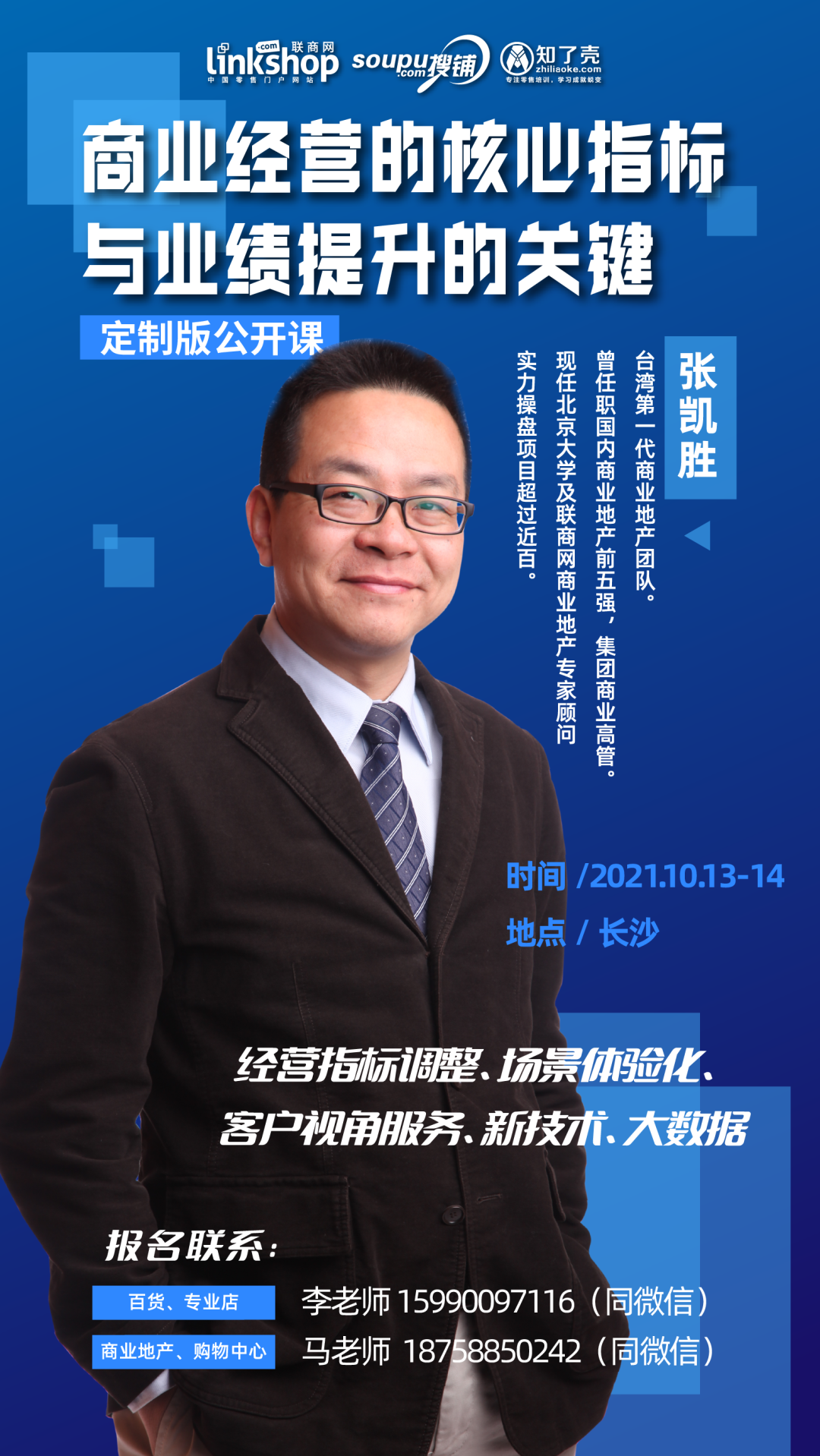 10月13日-14日,联商网将在长沙主办《商业经营的核心指标与业绩提升的关键》的培训课程,本次课程会结合国内数家领头商业集团实务管理核心知识与关键经营指标提升方法的分享,兼具境外成功经验与内地落地实操作法。张凯胜老师8个月后首度回归课堂,在联商网首开行业培训课程。