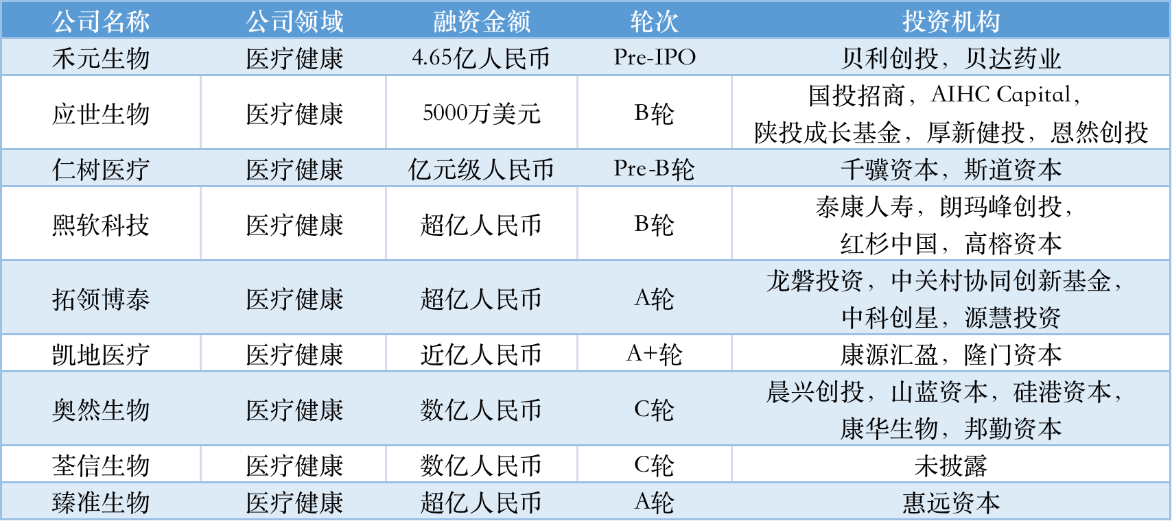 应世生物 医疗健康 5000万美元 B轮
