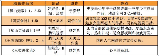 而娃娃鱼动画的重点动画化项目,《人类进化论》系列2D动画和《黑白无双》系列动画和B站合作;《蜀山奇仙录》系列3D动画则是和腾讯视频同为出品方。