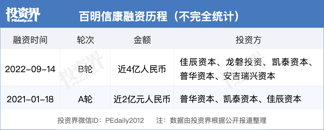 9月15日,百明信康宣布近日完成近四亿元人民币B轮融资。本轮融资由佳辰资本,龙磐资本,凯泰资本,普华资本和安吉瑞兴资本等五家机构投资。本轮融资的资金将主要用于核心产品的临床开发和团队建设,同时,也将加速各平台其它产品管线开发,为患者提供更加安全有效的药品,满足其临床需求。