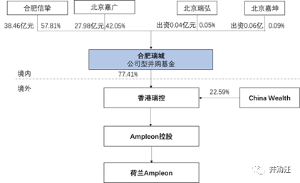 并购基金合肥瑞城成立后,下设主体香港瑞控。注册在开曼的China Wealth Growth Fund II L.P.(华融)持有香港瑞控22.59%股权,合肥瑞城对香港瑞控持股77.41%