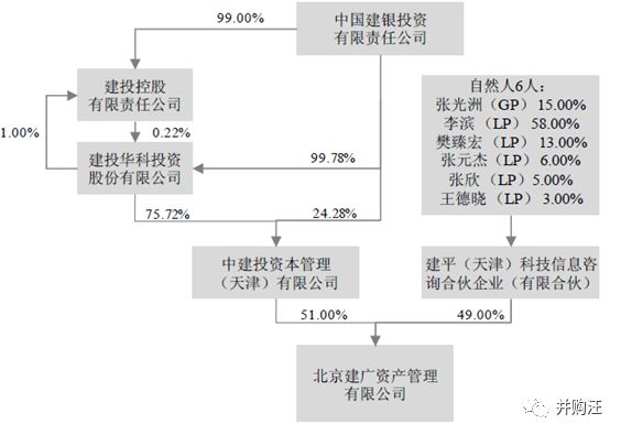 建广资产是一家专注于集成电路、云计算、网络通信等战略新兴产业投资并购的资产管理公司,由中建投资本持股51%,张光洲等6名自然人持股49%。穿透到最终,建广资产由建银投资控制。