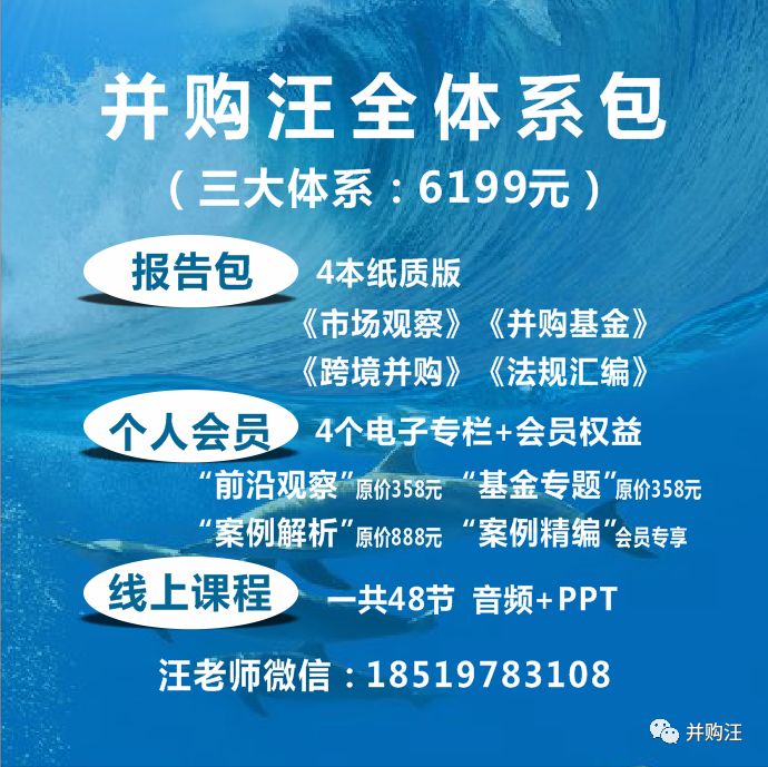 并购汪三大系列,为相互补充关系,不是相互替代关系。想及时跟上市场趋势的读者可选择会员电子专栏;想反复研习经典案例与专题的读者可选择研究报告;想在专栏与报告之外近距离感受实战经验的读者可选择课程。