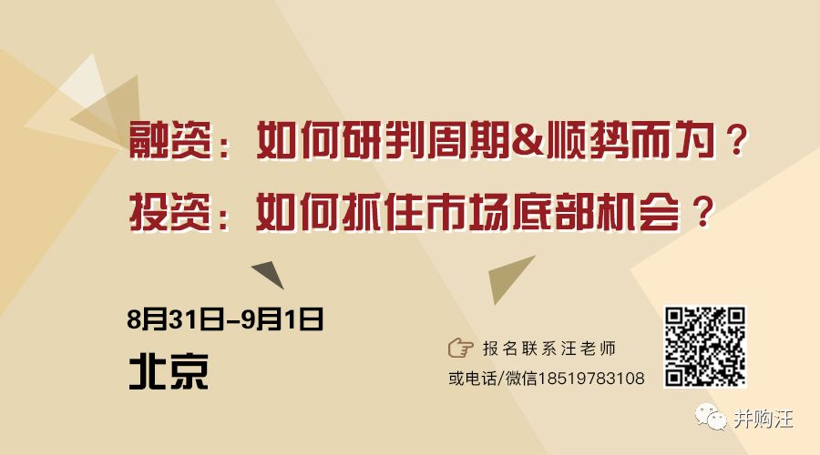 对融资主题感兴趣的朋友或有相关业务需求的朋友也欢迎参加添信学院联合并购汪举办的融资主题实战班(8月31-9月1日,北京),将有来自上市公司、银行、券商、律所的投融资专家,分享融资实战经验和心得。报名请联系汪老师,或微信/电话18519783108。