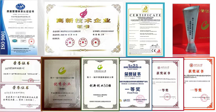发力高端装备制造,成立仅两年多时间,华晟复材先后荣获陕西省重点产业链“增材制造”产业链链主企业、陕西省上市后备企业、2024西安市未来之星TOP100(榜单第4名)、秦创原总窗口“三器”示范平台、秦创原科创之星等10余项荣誉;荣获第11届中国创新创业大赛全国总决赛二等奖(陕西省唯一获奖企业)、第11届中国创新创业大赛50强、秦创原2022西安市国际创业大赛一等奖。
