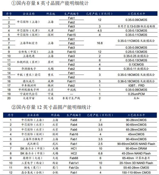 近年来,国内掀起了兴建晶圆厂的投资热潮。目前国内 8 英寸晶圆存量产能为 83.3万片/月,国内 12 英寸晶圆存量产能 60.9 万片/月。
