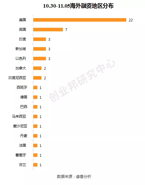 本周美国的事件最多,有22起;英国有7起事件,印度、新加坡、以色列分别有3起。