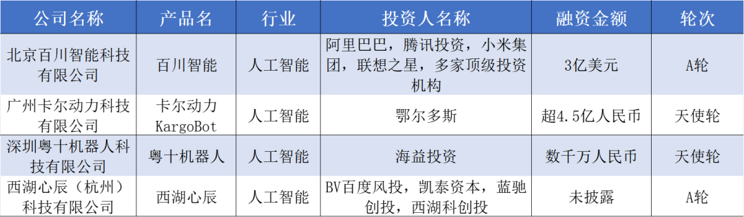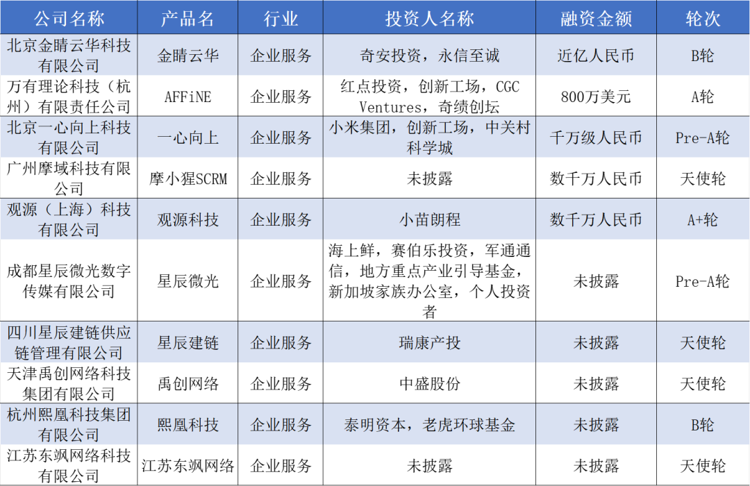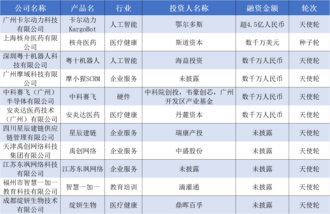 本周获得天使轮或种子轮融资的项目共有11笔,其中包括人工智能、医疗健康、企业服务、硬件、教育培训等行业。