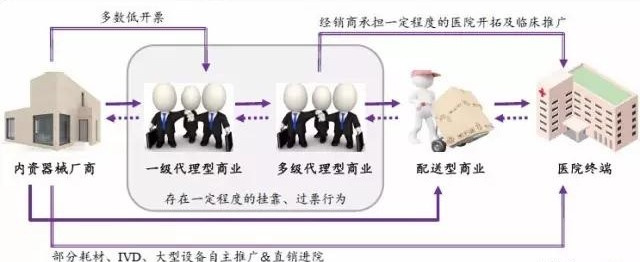 国内医疗器械厂商流通渠道供应链(源自百度)