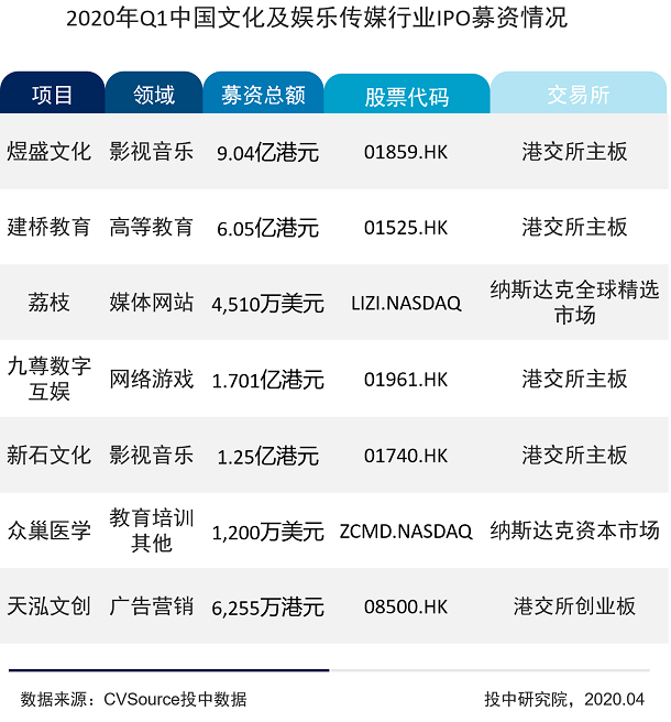 1、2020年一季度7家文化及娱乐传媒中企IPO