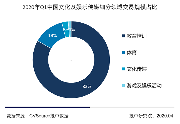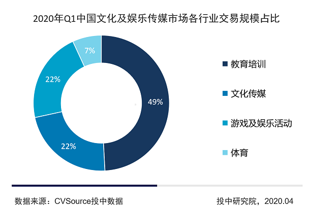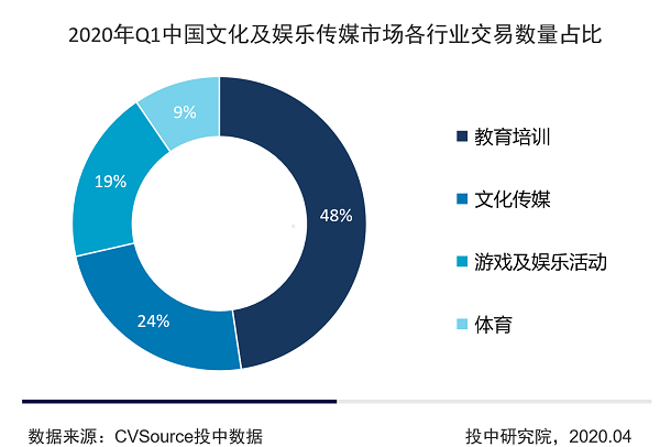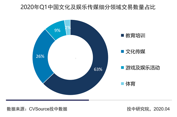 图3-2020年Q1中国文化及娱乐传媒细分领域交易数量占比