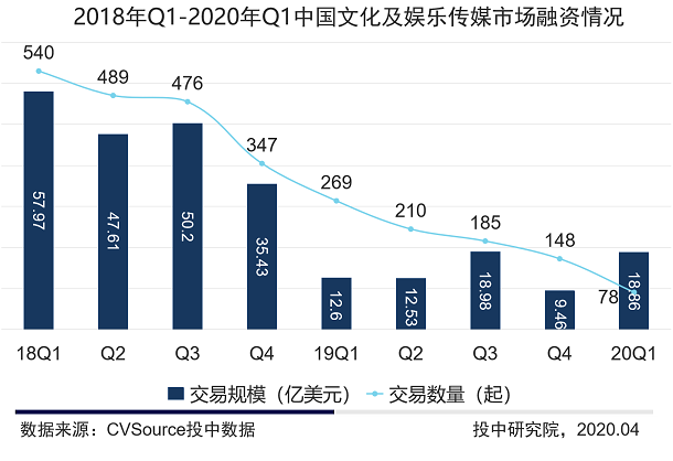 图 1-2018Q1-2020Q1中国文化及娱乐传媒市场融资情况