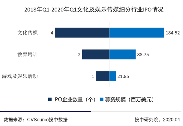 图11-2018年Q1-2020年Q1文化及娱乐传媒细分行业IPO情况