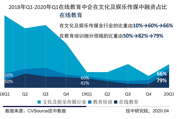 图5-2018Q1-2020Q1在线教育中企在文化及娱乐传媒中融资占比