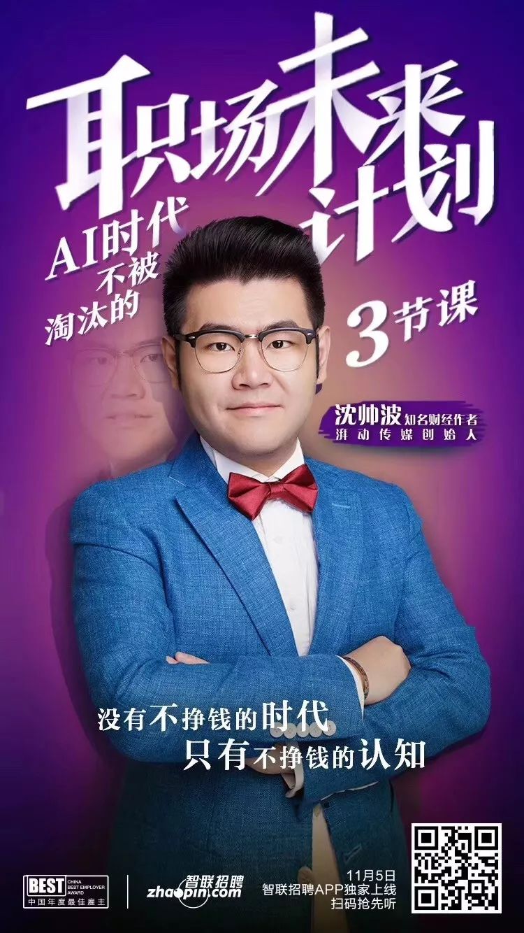最近智联招聘推出《职场未来计划:AI时代不被淘汰的职场课》,我和邱晨、刘同分别从就业选择、人际关系和焦虑管理3个方向开讲,助力求职者解密未来职场。