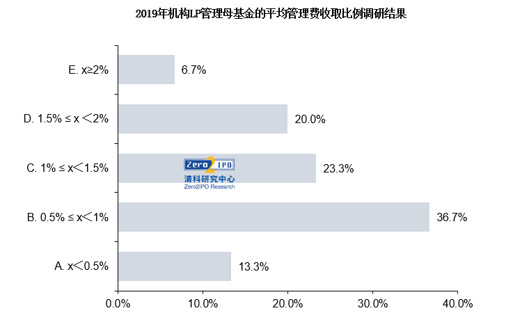 图7 2019年机构LP管理母基金的平均管理费收取比例调研结果