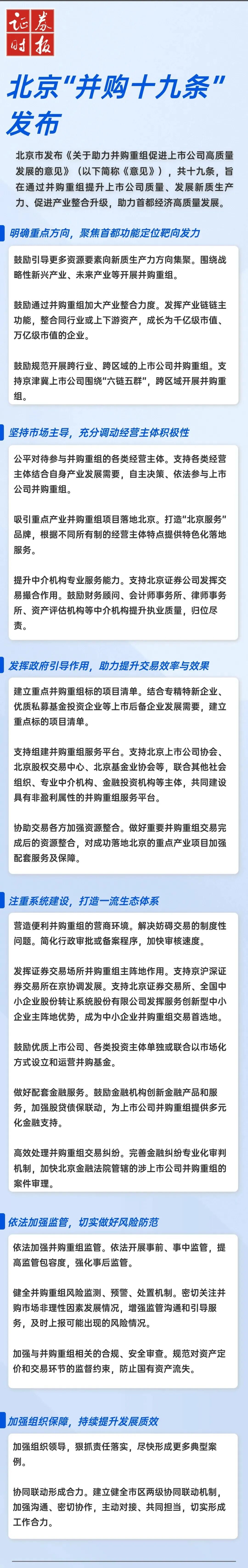 近日,北京发布《关于助力并购重组促进上市公司高质量发展的意见》(以下简称《意见》),旨在通过并购重组激活首都资本市场活力,加快产业整合升级,提升上市公司质量,推进首都经济发展向新质生产力方向转型升级。