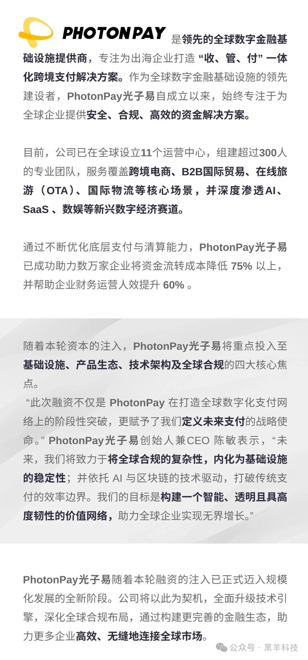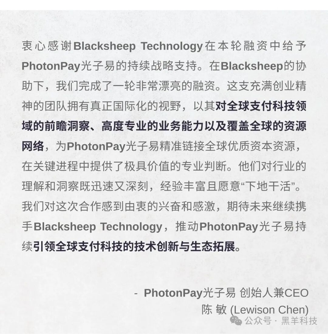 PhotonPay光子易完成B轮数千万美元融资, Blacksheep担任独家财务顾问