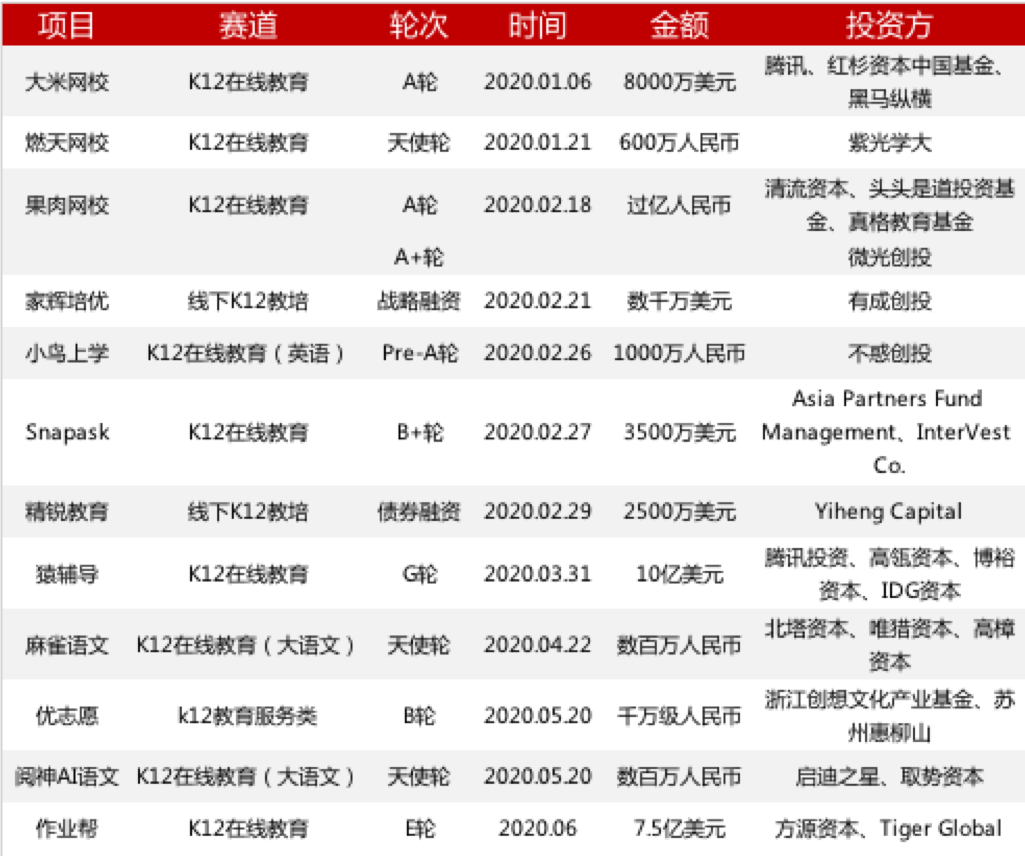 原题目《黑天鹅之年,钱去哪儿了?2020 年上半年教育行业一级市场投融资分析》