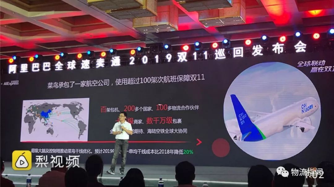 物流指闻最新获悉,菜鸟国际干线负责人谢志宇在阿里巴巴全球速卖通2019双11发布会上宣布:今年双11,菜鸟网络准备承包一家航空公司送快递,使用超百架次航班,提升整个国际干线的服务,确保双11国际物流时效相较去年提升10%。