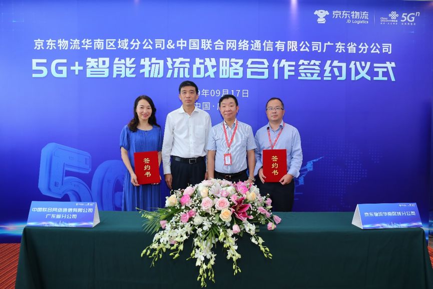 9月17日下午,京东物流华南区域分公司与中国联合网络通信有限公司广东省分公司举行合作签约仪式,宣布将在京东物流东莞“亚洲一号”仓库进行5G智能物流园区建设,打造5G智能物流联合创新实验室。