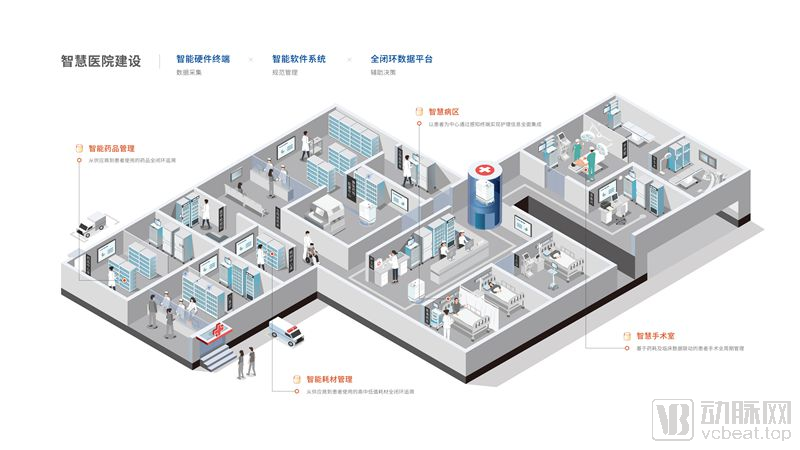 公司智慧医院物联网平台以设备中台及医院闭环数据平台为核心,研发系列化智能硬件实时采集医院临床及管理数据,通过系统软件优化院内外各部门流程并打通数据流转,构建统一的数据平台与医院现有信息系统无缝融合。