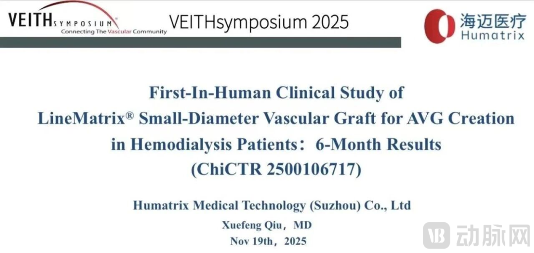 LineMatrix耐迈通不仅是国产首款进入创新医疗器械特别审查程序的小口径(≤6mm)生物型人工血管,更在临床表现上展现了卓越潜力。2025年11月19日,海迈医疗在第52届VEITHsymposium 2025年会上公布了LineMatrix耐迈通生物型人工血管FIM临床试验结果:相较传统 ePTFE 人工血管,该产品在通畅率、生物相容性及安全性方面表现突出。