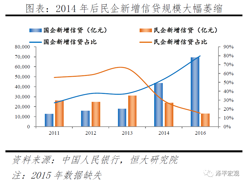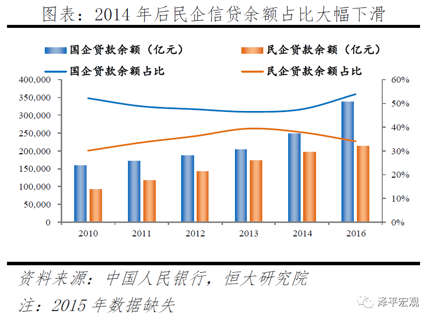 2)2010-2016年:2014年以前民企信贷融资畅通,2014年后阻塞