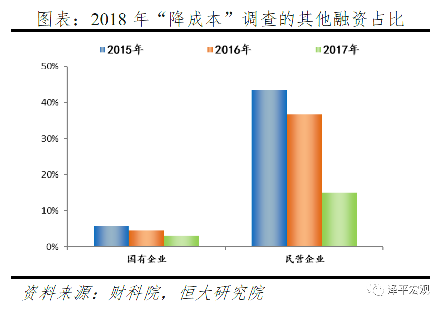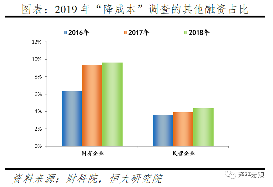 “降成本”调查将实体企业融资渠道划分为银行短期贷款、银行长期贷款、债券融资、股权融资和其他融资五类,其中其他融资包含包括信托、委托贷款、融资租赁和小额贷款等,可以视为非标融资。