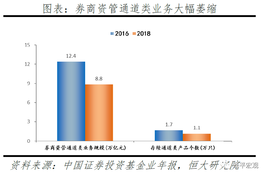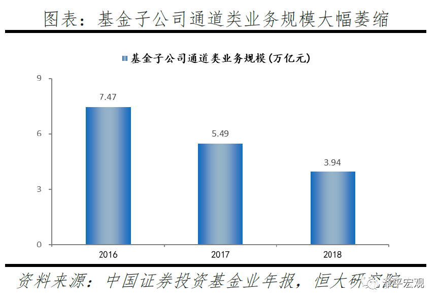 从通道类业务看,基金子公司和券商资管规模均出现大幅萎缩,使民营、小微企业信用扩张承压。截至2018年末,基金子公司通道产品管理资产规模3.94万亿元,占比75.2%,而2016年末基金子公司通道产品管理资产规模高达7.47亿元,占比71.1%。截止2018年末,证券公司通道产品11476只,管理资产规模8.84万亿元,而2016年末证券公司存续的通道产品16594只,管理资产规模达12.38万亿元。根据基金业披露数据,基金子公司和证券公司的通道产品资金均主要来源于银行,资金占八成以上,这表明基金子公司和券商资管通道类业务是传统商业银行信贷的重要补充,民营企业等难以从商业银行获取信贷资源的企业获得了间接的信贷支持。2017年金融严监管和2018年资管新规后,基金子公司和券商资管通道类业务受到了严监管,通道业务规模下降明显,结合财科院数据来看,通道业务去杠杆主要去了民企杠杆,民企融资压力加剧,信用大幅收缩。