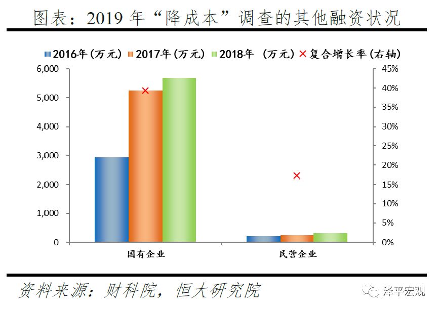 从2018、2019年两次调查结果对比来看,2017年的金融严监管对民企造成较大冲击,部分依赖非标融资的民企或出现破产、退出市场现象。从规模来看,2019年“降成本”调查中,国有企业其他融资平均规模与2018年调查结果接近,2016-2018年分别为2931万元/家、5244万元/家,5695万元/家。但2019年民企其他融资调查结果与2018年存在巨大差异,2016-2018年分别为223万元/家、257万元/家、306万元/家,较2018年调查结果大幅萎缩。从占比来看,两次“降成本”调查中,国有企业其他融资占比较为接近,分别落在3%-6%和6%-10%区间内,但民企有明显差异,2018年调查占比在15%-43%区间内,而2019年调查则萎缩至3%-4%区间内。我们认为,差异的成因或在于两次调查存在“幸存者偏差”现象:2017年的金融严监管对民企产生了较为严重的负面冲击,不仅其他融资规模大幅萎缩,甚至有部分依赖非标融资的企业可能出现破产倒闭,退出2019年“降成本”调查,信用收缩给宏观经济、企业家信心带来了巨大压力。