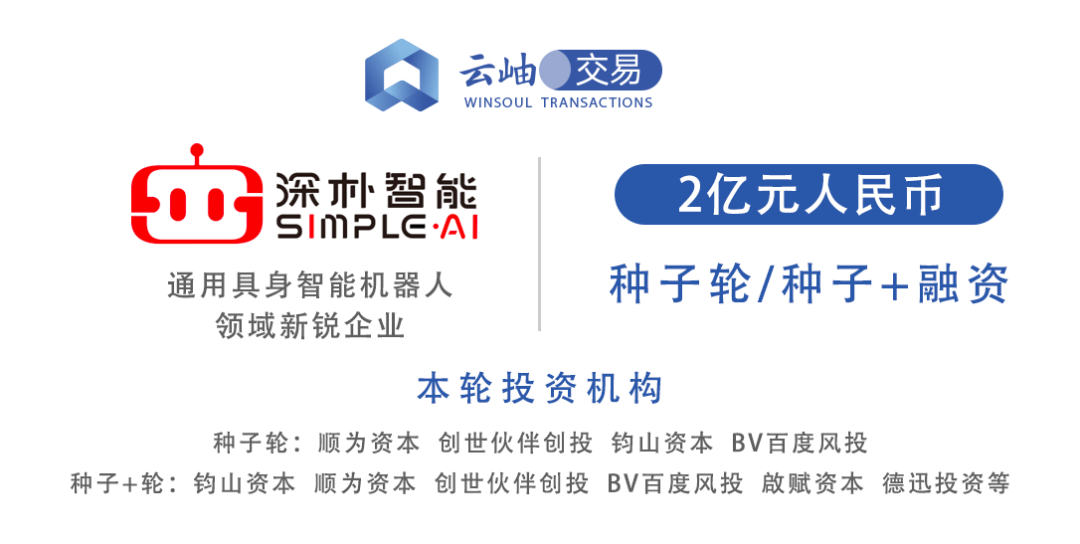 近日,通用具身智能机器人领域新锐企业「深朴智能(Simple AI)」传来融资捷报,3个月内连续完成种子轮与种子+轮融资,累计金额达2亿元人民币,为具身机器人的商业化落地突破注入强劲势能。其中,种子轮由顺为资本、创世伙伴创投联合领投,钧山资本、BV百度风投跟投;种子+轮由钧山资本领投,顺为资本、创世伙伴创投、BV百度风投等老股东持续加注,啟赋资本、德迅投资等知名机构同步跟投,云岫资本担任融资财务顾问。募集资金将重点用于具身机器人大脑及本体的研发投入。