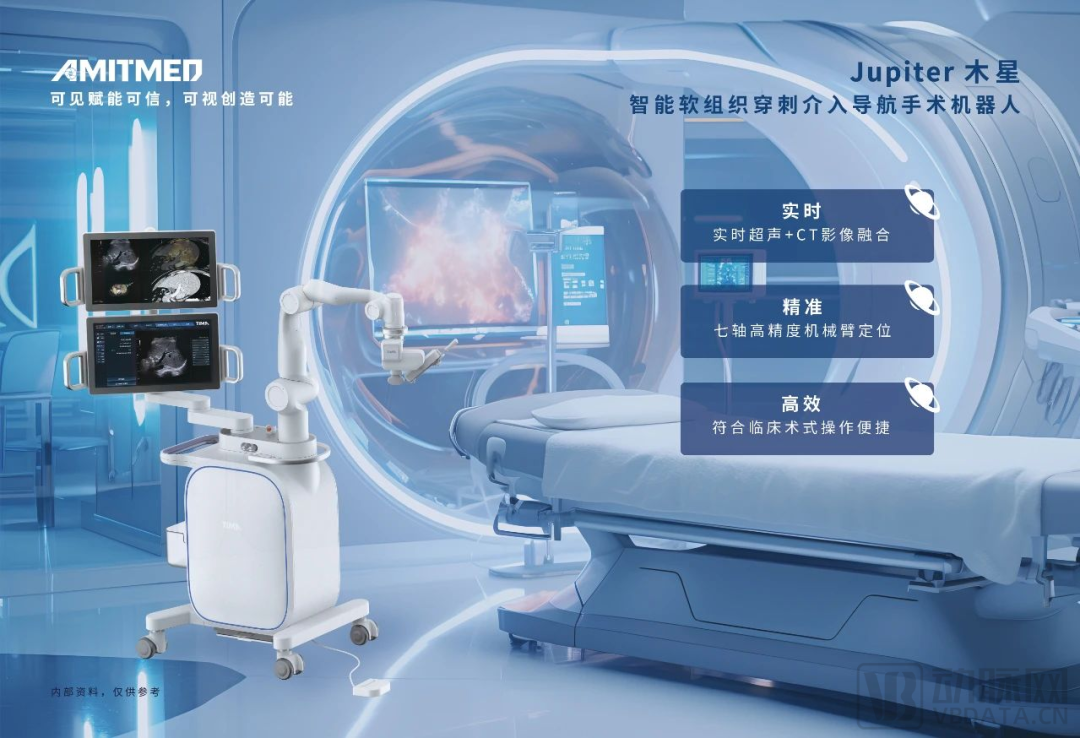 据悉,木星-智能软组织穿刺介入导航手术机器人90%以上的零部件已经实现了国产化,将手术机器人的成本从原先的上千万和近千万,降低到了与一台旗舰超声设备接近的市场价格。该产品现已经提交NMPA注册申请。