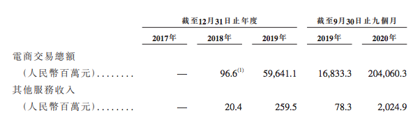 快手的其他服务,2019年收入2.60亿元,2020年上半年收入8.10亿元,2020前九个月收入20.25亿元,占总收入比重从0.1%上升至3.2%与5%,
