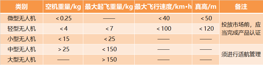 《无人驾驶航空器飞行管理暂行条例(征求意见稿)》对无人机的分类,放大灯制表