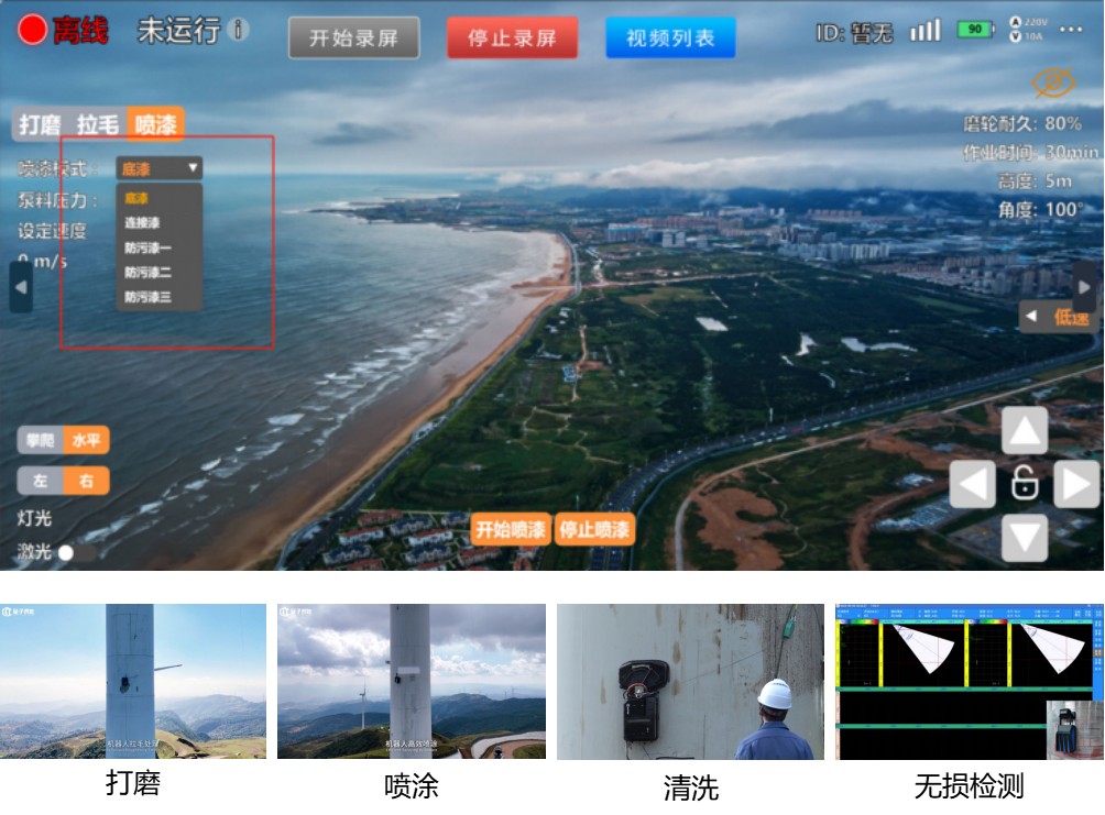 以风电高空一体化作业机器人为例。「量子智能」推出了基于鸿蒙系统协同的智能作业机器人平台,通过无人机+多机器人,对塔筒进行全方位扫描,迅速完成三维建模,精准生产坐标并即时同步至平台,再由操作人员根据实际需求,灵活设置自动定点行走与位置点行走,让机器人在复杂环境下也能按预设路线精准移动。
