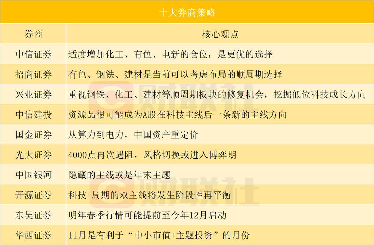 十大券商策略:化工、有色顺周期板块获多家券商推荐
