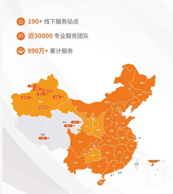 在服务层面,依托轻资产布局,搭建起标准化、可复制的运营体系,实现全国范围内的高效扩张。目前,小橙集团核心服务布局城市近60座、线下服务网点超190个,走规模化、连锁化发展路径,成长潜力较大。