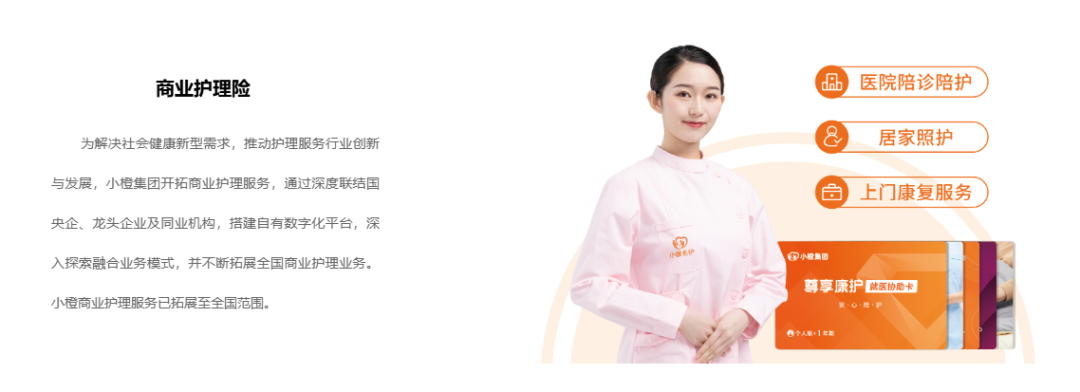 根据公开信息,小橙集团成立于2021年,立足于大健康领域,深耕综合为老服务行业,快速成长为中国智慧健康养老综合服务第一梯队企业。集团依托AI智能医护康养平台,整合智能养老产品与综合养老服务,提供一站式数字医护康养解决方案。