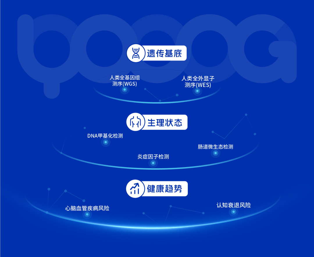 为此,我们基于“遗传基底”、“生理状态”、“健康趋势”的三层精准健康模型,旨在构建全面、可干预的科学延缓衰老服务体系。
