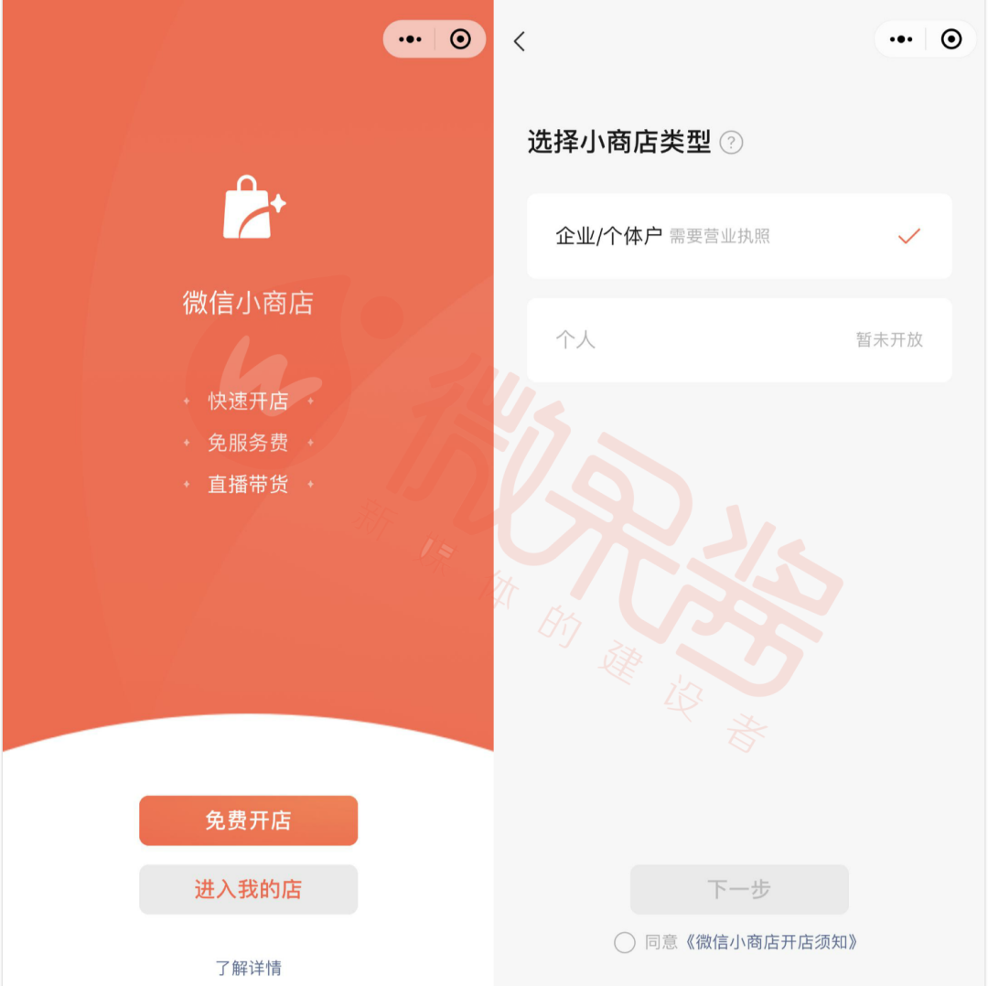 没错,在小商店之前,公众号后台一直有“微信小店”的能力,只要企业主体认证的服务号开通微信支付功能后,即可申请开通“微信小店”。