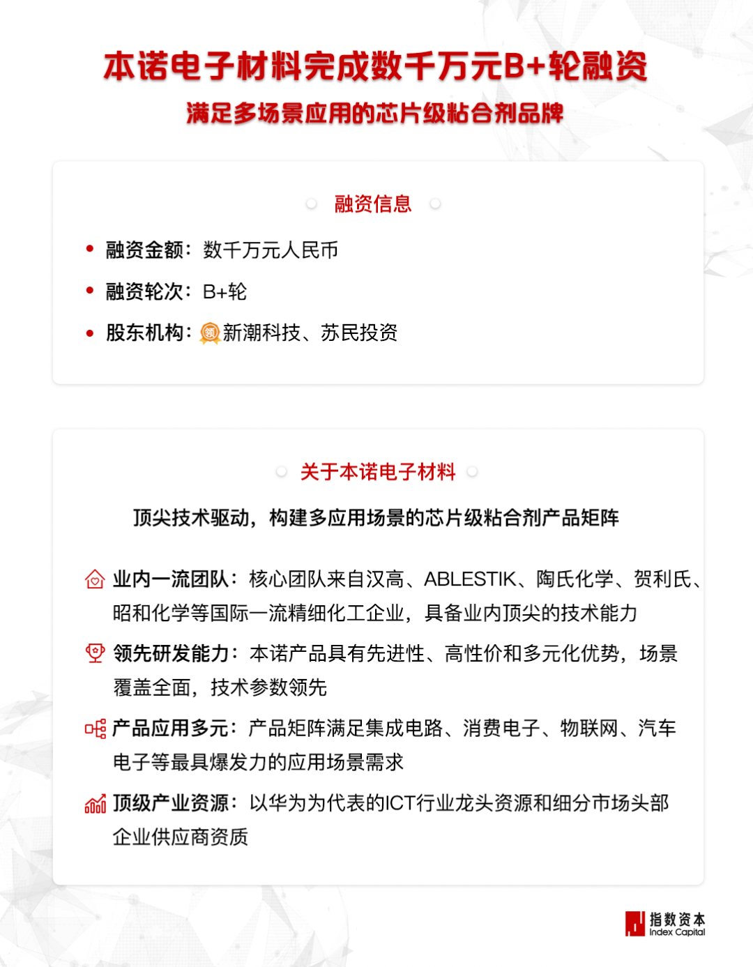本诺电子材料完成数千万元B+轮融资,指数资本担任独家财务顾问