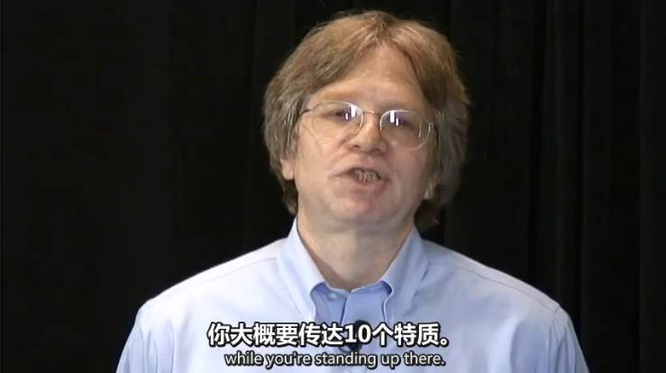 比如比尔盖茨为windows做一个演讲,这是你应该学的方式吗?你们怎么想?不,那我们应该学谁呢?SteveJobs,你想要最棒的,这就是演讲的机制,不是吗?看他,个不高,便装,在一个空旷的舞台上,你会集中在哪里?集中在他身上,这就是Steve Jobs。所以,你知道,我们钟爱美妙的,长长的要点,列表,等等。