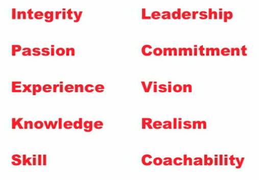 你要能说服我们,你或者你的团队拥有了所有这些技能,你要有感染力,还有管理的方式,能让人们跟随你的领导,鼓舞、激励他们成为你团队的一部分。