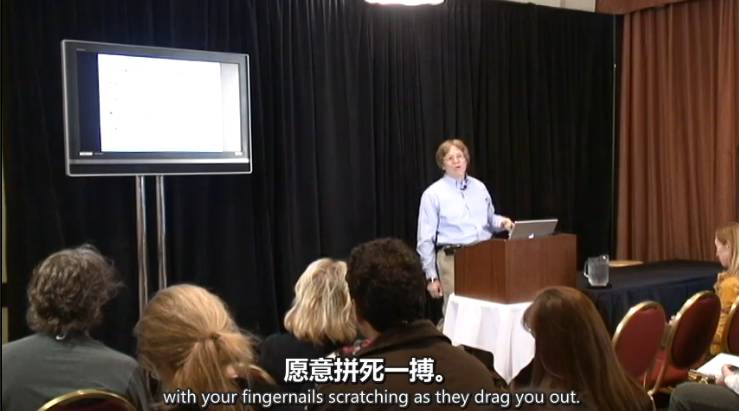 看的是PPT,幻灯片的特殊版本,它让我看到之前和之后的幻灯片,还有我的笔记,所以我能看到是怎么回事。Power point出版的时候有这个功能,如果你用苹果电脑的keynote,它的这个功能还要更好,还有一个软件叫ovation ,可以从adobe买到。它可以帮助你计时,让你知道下面该讲什么。