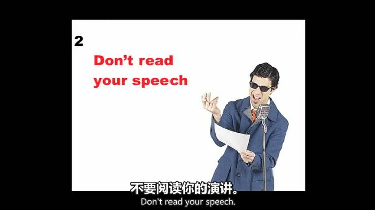 第五,最重要的演讲技巧:永远也不要盯着屏幕,因为你在和你的听众建立一种联系。你要保持这种一对一的联系,屏幕应该在你身后出现,补充你,而不是代替你。